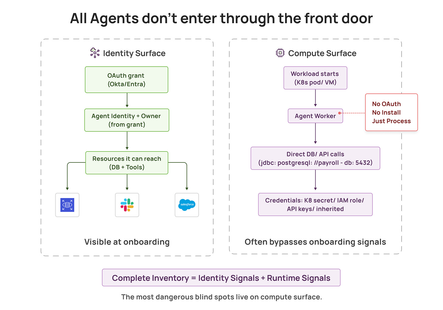 Discover agents on the integration surface and the compute surface. Together, you get coverage. Separately, you get blind spots.