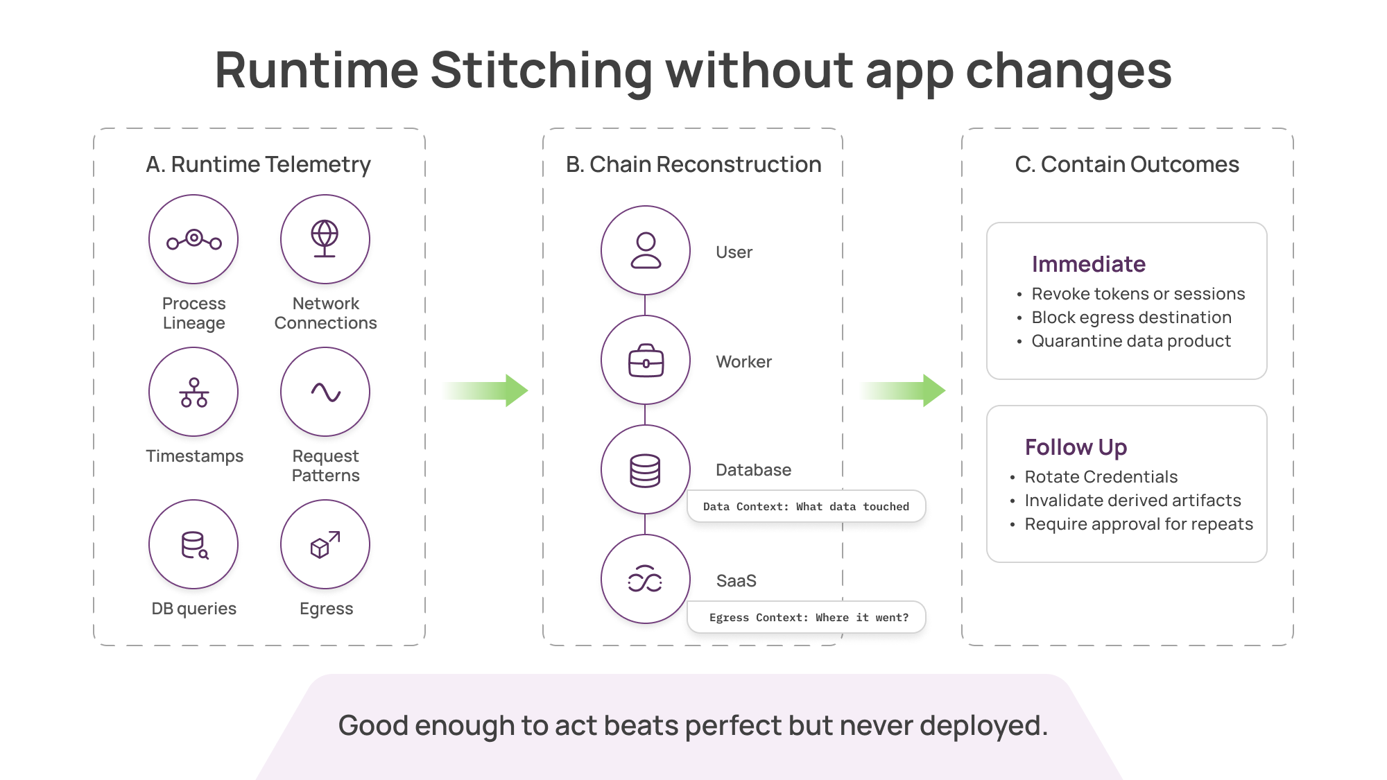 Attach data context (what data was touched) and egress context (where it went)