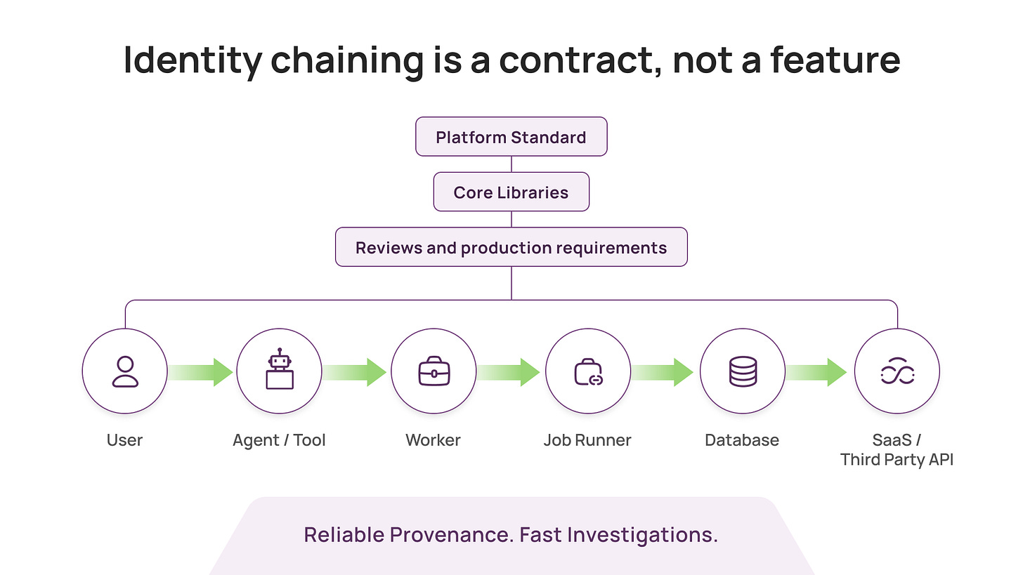 Identity chaining is the control that makes investigations and containment possible in modern stacks.